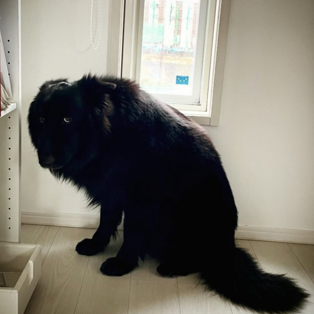 「妖怪…?」怒られて限界まで小さくなったシェパード、子熊のような暴れん坊…黒いワンコたちの激変ぶり
