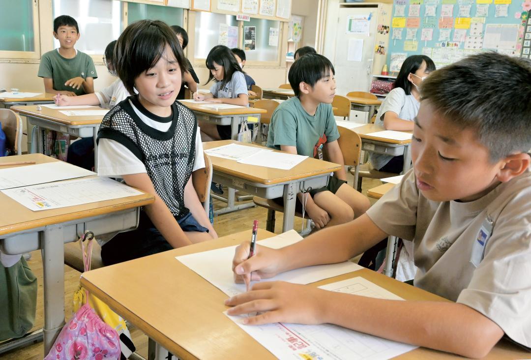 茨城新聞の出前授業が7月11日、茨城県日立市立田尻小(川野辺和校長)であり、4年生42人が友達をインタビューして、記事を書く体…