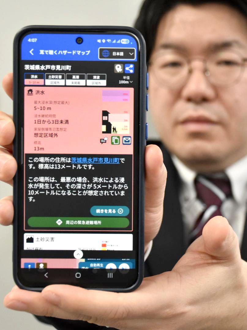 茨城県は13日、スマートフォンを使ってハザードマップの情報や避難場所までの経路などを音声や多言語を通じて利用できるサービ…