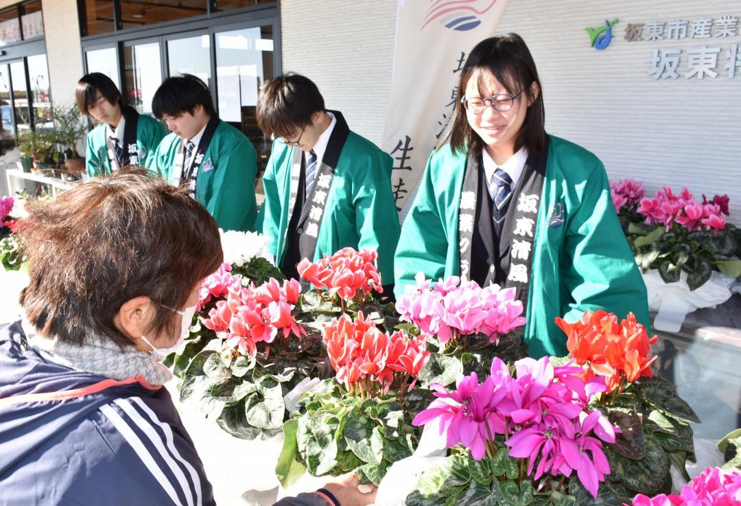 茨城県立坂東清風高(同県坂東市岩井、四位学校長)の農と食科の生徒が栽培したシクラメンの販売実習が4日、同市長須の市産業経済…