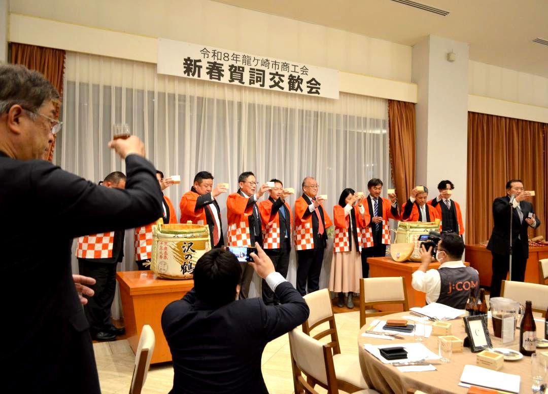 茨城県龍ケ崎市の市商工会(塚本裕会長)の新春賀詞交歓会が1月19日、同市松ケ丘の結婚式場「アルシェ」で開かれた。萩原勇市長を…