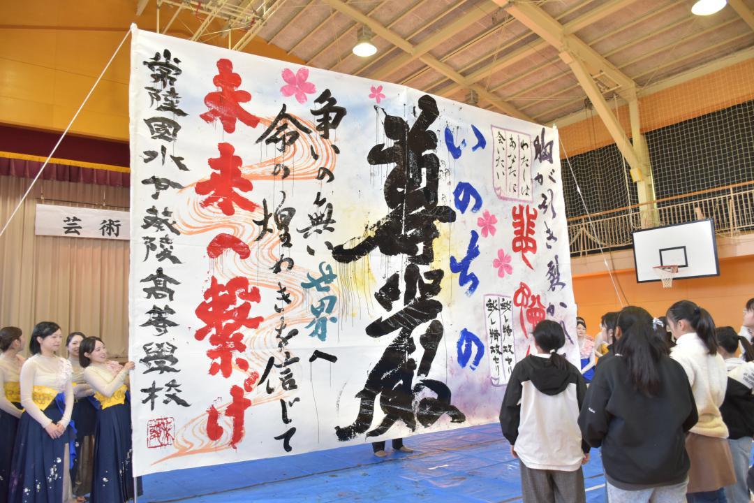 今年の書道パフォーマンス甲子園で初優勝した水戸葵陵高の書道部員13人が11月26日、茨城県下妻市立騰波ノ江小(同市若柳甲)でパ…