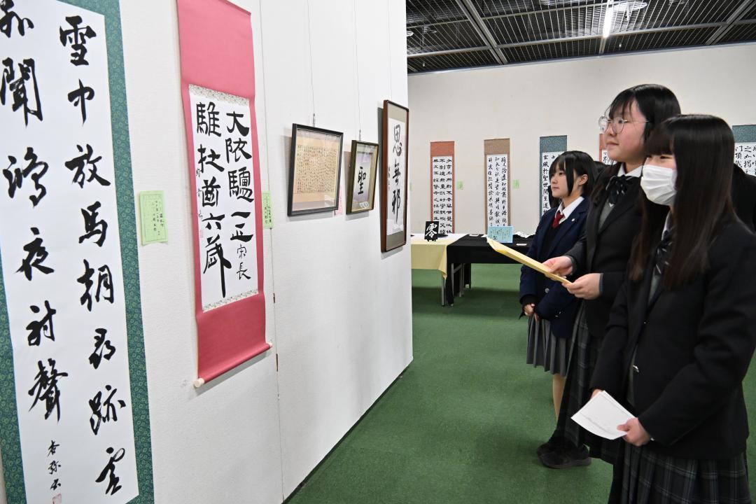 第34回茨城県中央地区高校生徒書道展(県高校文化連盟書道部会主催)が29日、同県水戸市千波町のセキショウ・ウェルビーイング福…