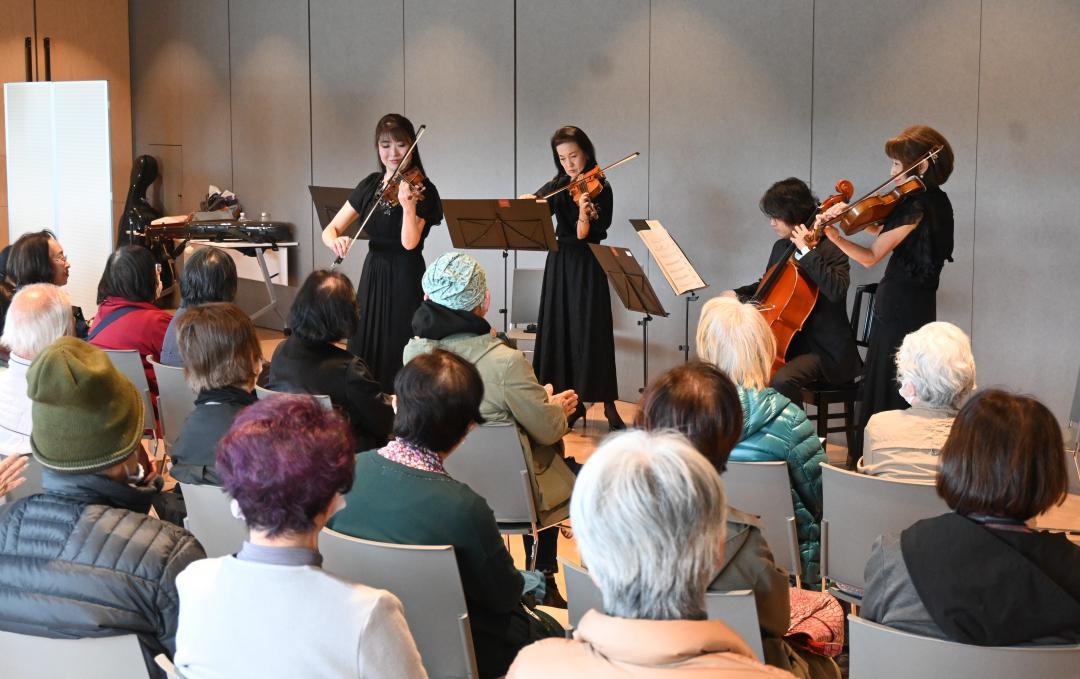 東京室内管弦楽団メンバー4人によるランチタイムコンサートが18日、茨城県結城市中央町の同市役所多目的スペースで開かれた。バ…