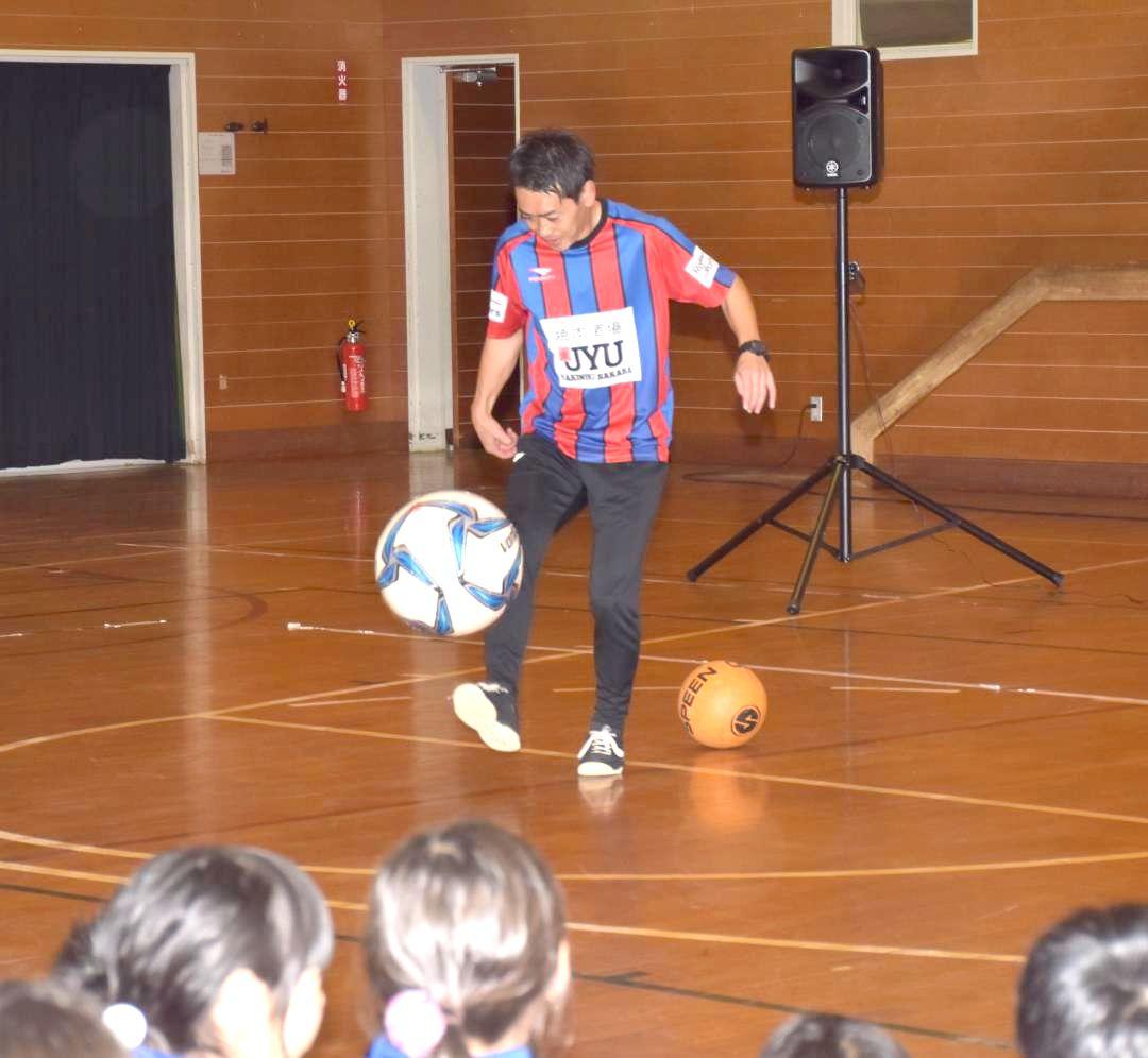 茨城県常陸太田市大里町の市立金砂郷小(富永佐江子校長)は18日、同市出身で都内在住のプロフリースタイルフットボーラー、トミ…