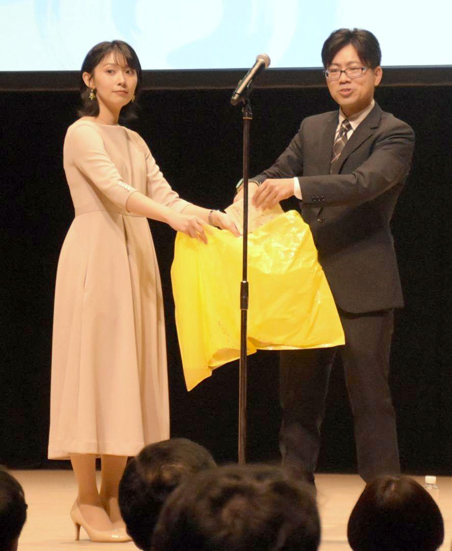 茨城県茨城町長岡の町立葵小(藤井とし子校長)の創立10周年記念式典が8日、同校体育館で開かれた。同校歌を作詞作曲した音楽家の…
