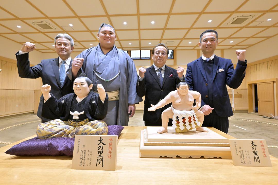 横綱大の里関(二所ノ関部屋)に、関彰商事(本社茨城県筑西市・つくば市、関正樹社長)が25日、横綱昇進を祝う記念人形を贈った。…
