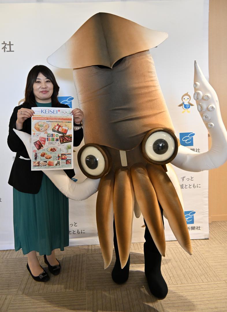 茨城県水戸市泉町の京成百貨店で24日に「函館の物産展」が始まるのを前に、北海道函館市経済部食産業振興課長の五十嵐かなめさ…