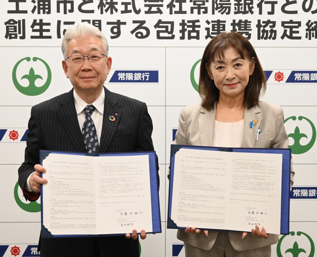 茨城県土浦市と常陽銀行(同県水戸市)は18日、地方創生に関する包括連携協定を結んだ。締結式が土浦市役所で開かれ、安藤真理子…
