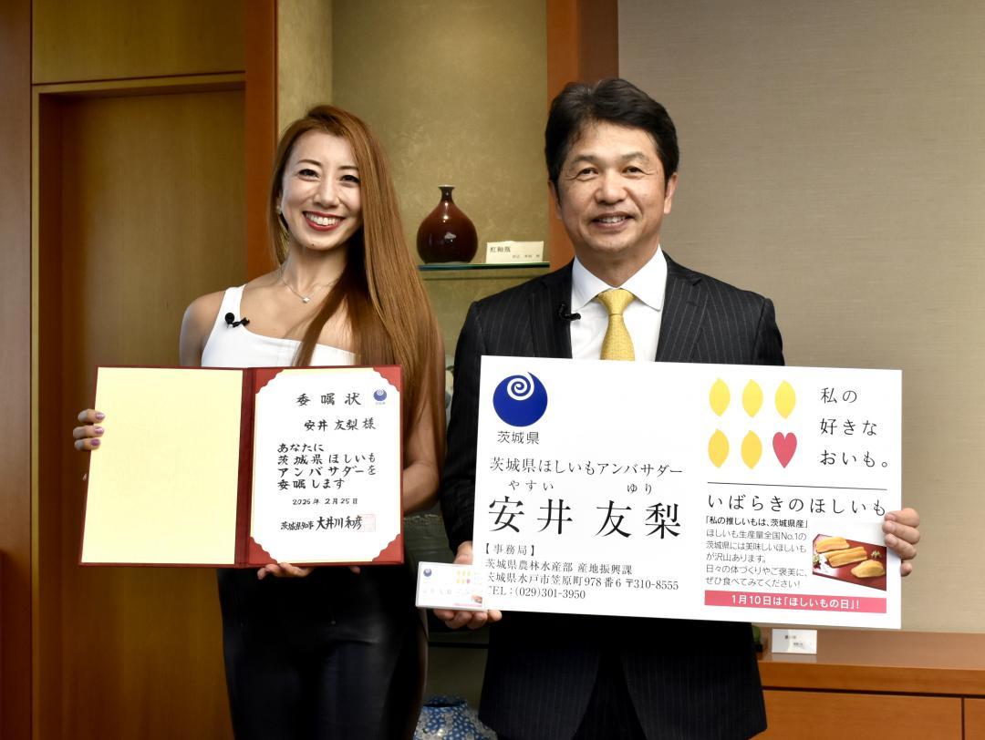 産出額全国1位の茨城県産干し芋の魅力を国内外に発信するため、県はビキニフィットネスアスリート、安井友梨さんに「茨城県ほし…