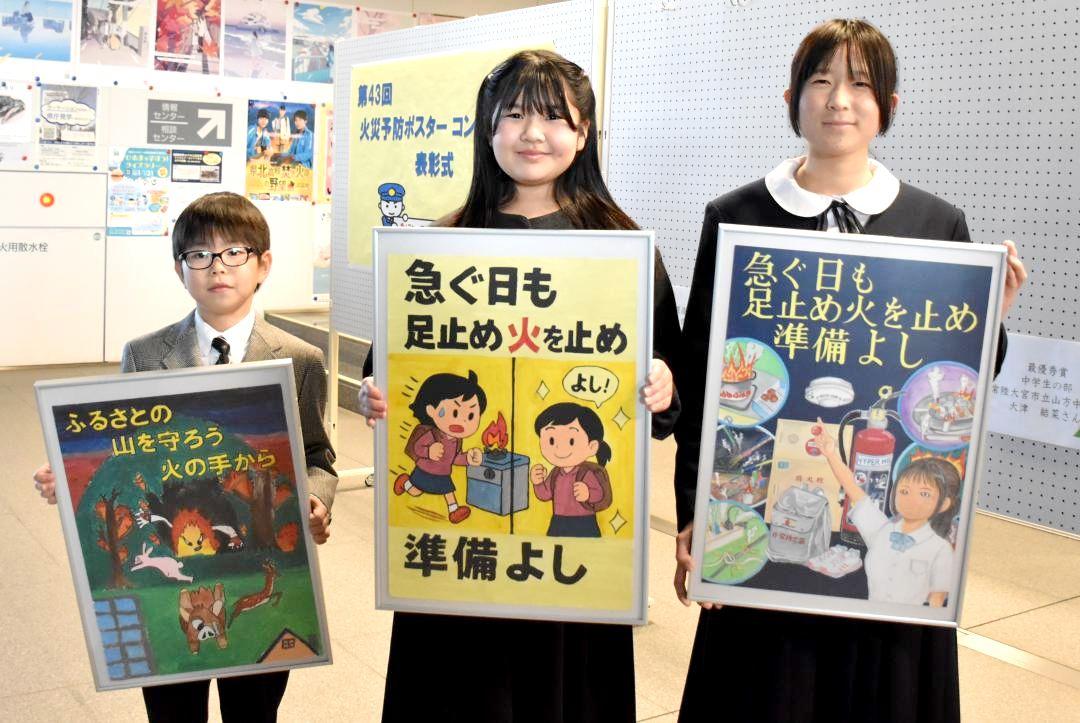 第43回火災予防ポスターコンクール(茨城県など主催)の表彰式が30日、県庁で開かれ、小学校の低学年と高学年、中学校の3部で最優…