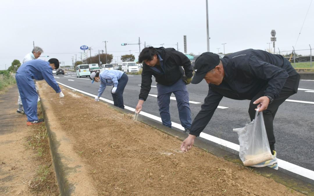 道路ボランティア団体「県道潮来佐原線植栽帯整備委員会」(飯田幸弘会長)が主催する花街道整備作業が25日、茨城県潮来市内の東…