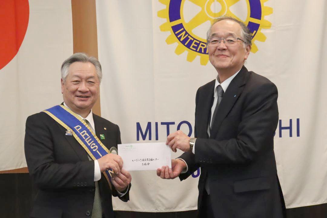 水戸東ロータリークラブ(RC、磯野敦義会長)は、いばらき被害者支援センター(川上俊也理事長)の活動を支援しようと、10万円を寄…