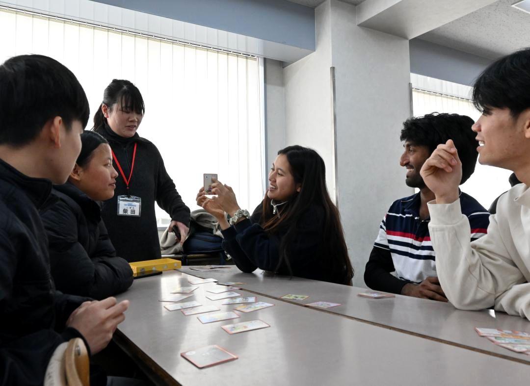 茨城県取手市戸頭の日本語学校「つくばスマイル」で6日、簡単な日本語で書かれた「防災かるた」を留学生が体験した。防災かるた…