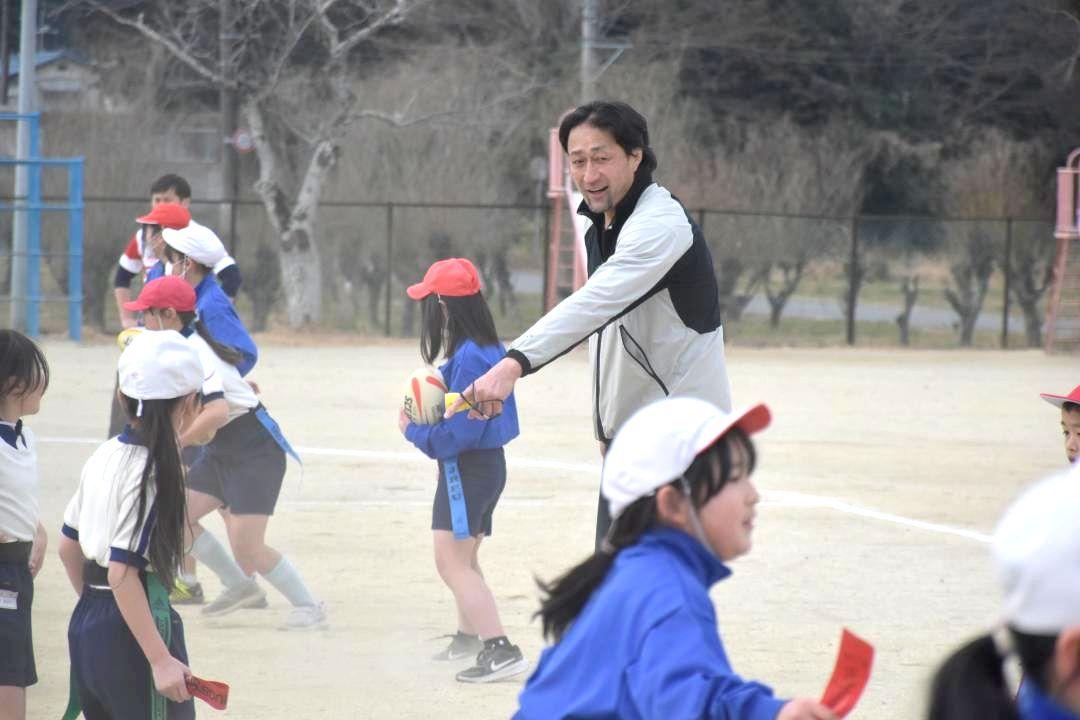 ラグビー元日本代表の大野均さん(47)が6日、茨城県笠間市市野谷の市立岩間三小(箱田俊男校長)を訪れ、講演やラグビーの授業を行…