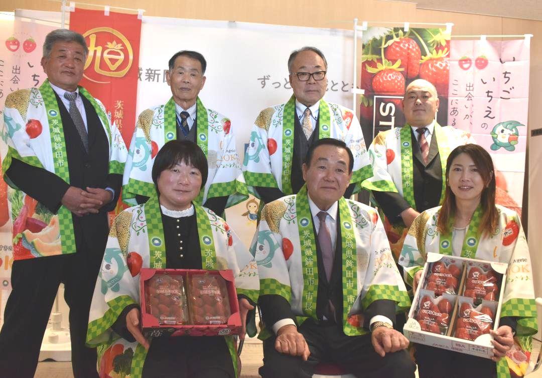 茨城県内一のイチゴの産出額を誇る鉾田市の井川茂樹市長やJAほこたの菅谷正組合長、JA茨城旭村の新堀喜一組合長らが12日、同県…