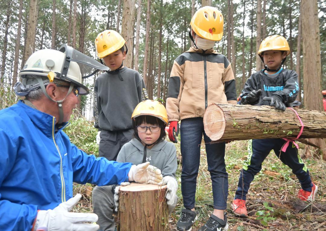 茨城県那珂市古徳の市有林で市立瓜連小の3年生39人が2月27日、森林の保全を担うボランティア団体「なか自然の会」(岡村光雄会長…