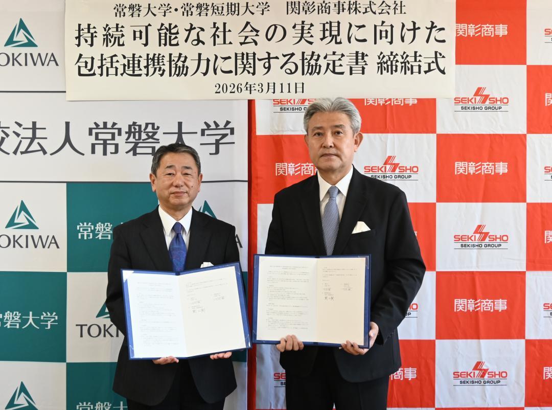 地域社会の発展を目指し、関彰商事(関正樹社長)と常磐大・短大(下村裕学長)は持続可能な社会の実現に向けた包括連携協定を結ん…