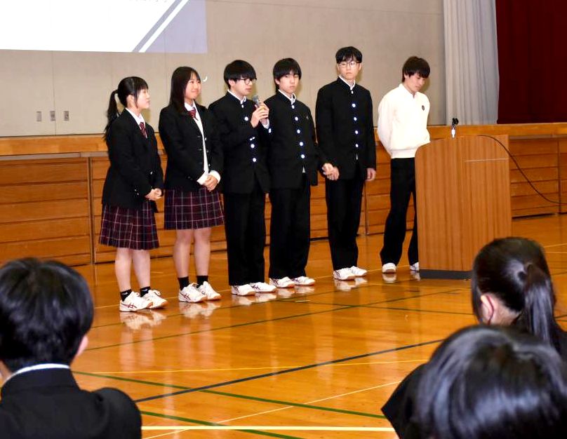 茨城県鉾田市鉾田の県立鉾田一高(飯山美都子校長)で「総合的な探究」の発表会が開かれた。全校生徒を前に2年生の4グループ21人…