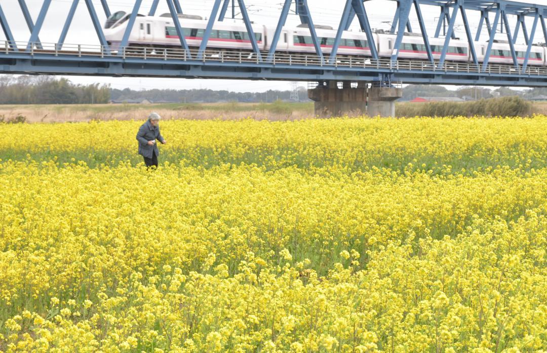 茨城県日立市留町の久慈川河川敷にある「菜の花緑地公園」で菜の花が見頃を迎えている。2.2ヘクタールの広大な敷地は一面が花で…