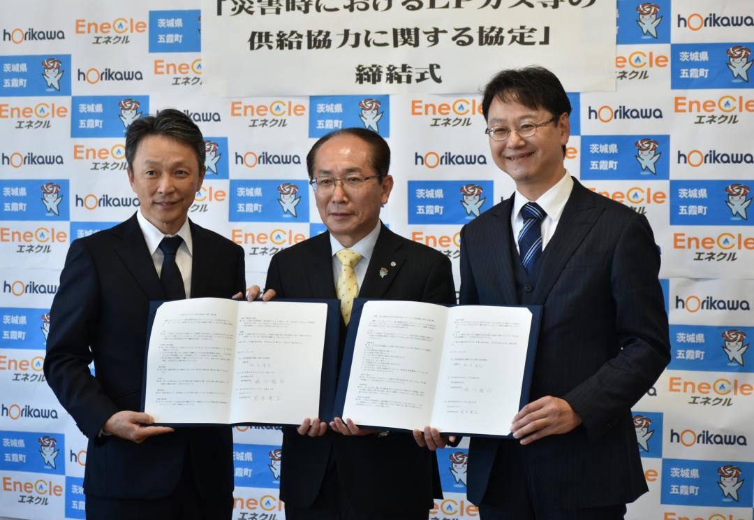 茨城県五霞町は19日、埼玉県草加市の総合エネルギー企業の堀川産業(堀川雅治社長)、子会社のエネクル(宮本康正社長)の両社と、…