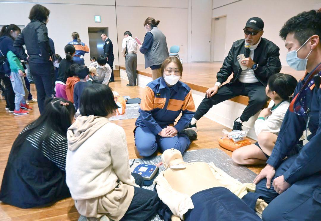プロレスラーの蝶野正洋さんを特別ゲストに迎えた自動体外式除細動器(AED)・防災体験会が14日、茨城県小美玉市部室の四季文化館…