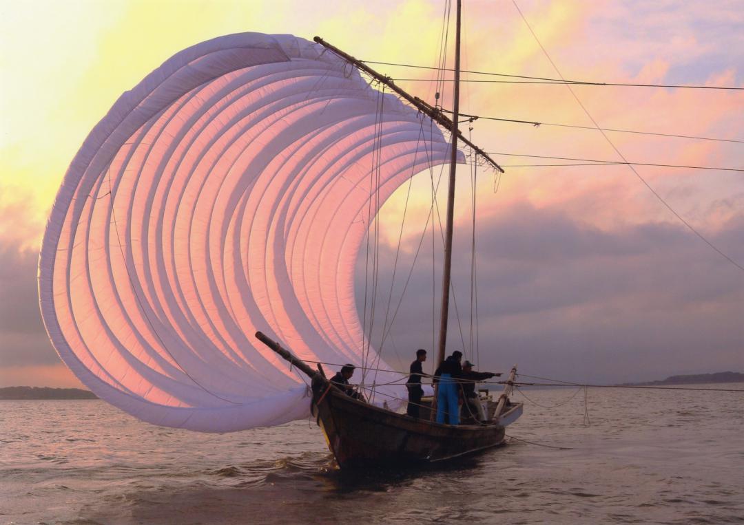 「帆引き船夕景」 夕田盛利(鹿嶋市)