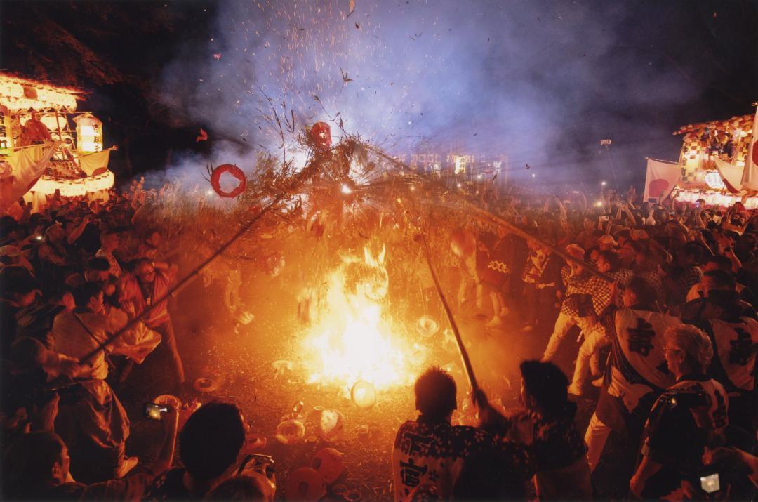 最優秀賞は袴塚優人さんの「火伏」です。3年に1度、那珂市の菅谷鹿島神社を中心に開かれる「大助祭」のクライマックス。ちょうちんを付けた竹ざおでかがり火をたたき消す火伏せの儀式を、超広角レンズで臨場感たっぷりに写しました。炎に照らされた群衆に合わせた露出が効果的です。火の粉が舞い上がるたびに湧き起こる歓声やどよめきが聞こえてきそうです。