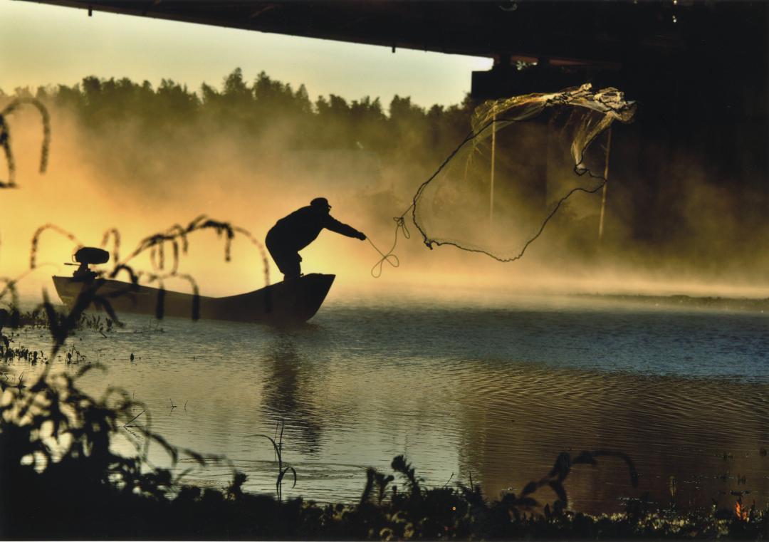 優秀賞には平沢徳孝さんの「早朝漁」と、宮木尚男さんの「華の祝宴」が選ばれました。「早朝漁」は、晩秋の那珂川。アユ漁でしょうか。朝日に輝く川霧を上手に利用し、漁をする人と放たれた投網を浮かび上がらせています。ひんやりとした秋の空気感が伝わる作品です。
