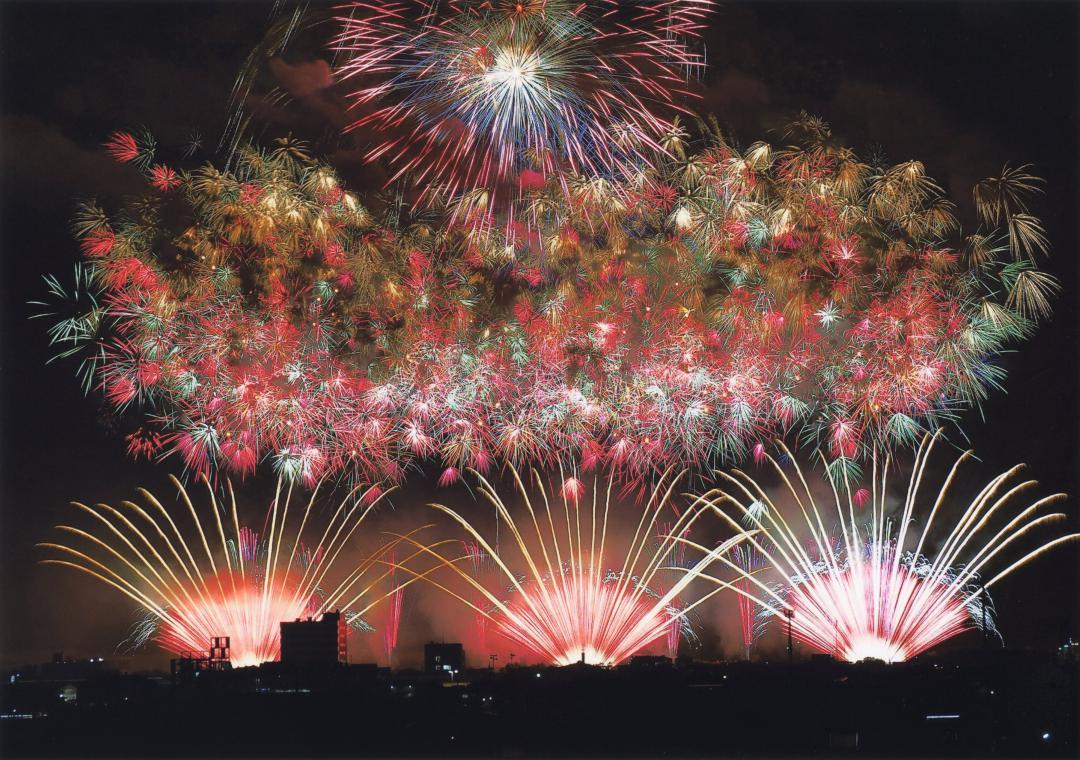 「華の祝宴」は、土浦全国花火競技大会で打ち上げられたワイドスターマイン。絢爛(けんらん)豪華さをそのままに写し留めました。NDフィルターを用いた露出の制御が秀逸です。(写真映像部)