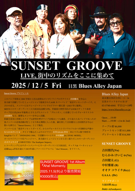 角松敏生プロデュース“VOCALAND”、林哲司プロジェクト“GRUNION”の超実力派ヴォーカリスト・吉田朋代、ついにオメガトライブの吉田健太と邂逅!杉山清貴&オメガトライブのギタリスト吉田健太を中心に各方面で活躍していたミュージシャンで結成されたバンド。吉田朋代とむらかみけいじゅのダブルボーカルなど、豪華なメンバーによるデビューアルバム『Aha! Moment』販売記念初レコライブ。