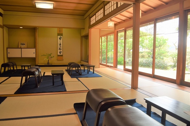 あけぼの山公園のお茶室「柏泉亭」にて、秋の茶庭を眺めながら、椅子に座って気軽に薄茶と和菓子を楽しめる。「柏泉亭」は日本庭園の中にある露地を持つ本格的なお茶室。また、関東三大弁天の一つのである紅龍山布施弁天東海寺に隣接しているため、お参りを兼ねたプチ観光にも最適。※予約不要