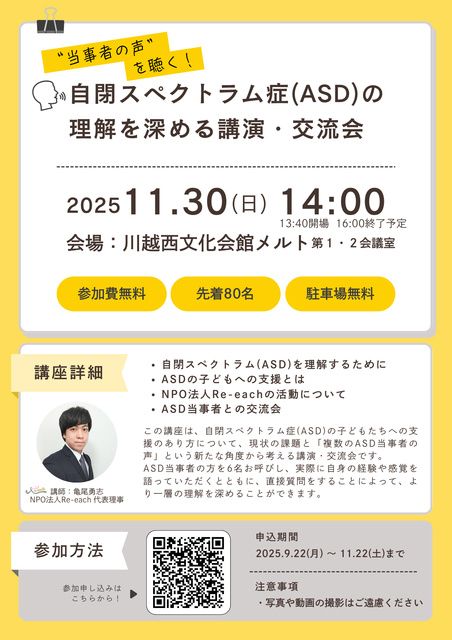自閉スペクトラム症(ASD)の理解を深める講演・交流会
