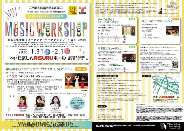 世界で最先端の教育普及活動を行っているポルトガルの音楽施設「カーザ・ダ・ムジカ」と東京文化会館が連携して実施するミュージック・ワークショップを今年も立川で開催! ジャンルを超えた音楽の楽しさを体験しながら、協調性や創造性を育む参加型の教育プログラムを届ける。0歳~大人まで楽しめるワークショップやコンサートを実施。対象を月齢ごとに設定しているので、小さな子供も安心して参加可能だ。