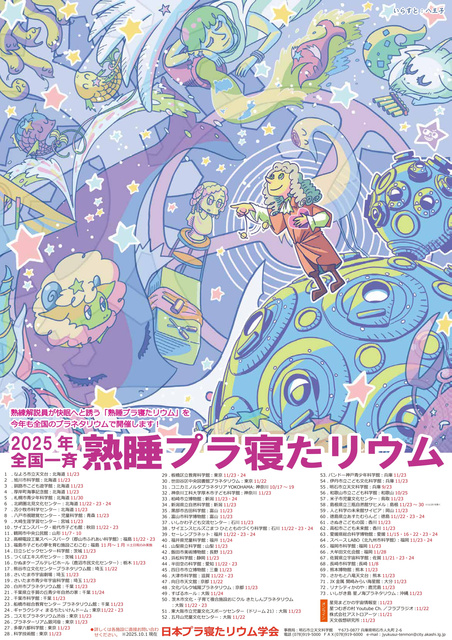 日頃の疲れを癒してもらうべく、「眠りの空間」を提供するプログラム。My枕やMyブランケットの持ち込みもOK。音声による星座解説はなし。眠れた人には「熟睡証明書」、一睡もしなかった人には「完徹証明書」を発行する。対象はだれでも(未就学児は保護者同伴)。定員は80名、車いす2席(桟敷席の使用は不可)。当日9:00よりギャラクシティ1階総合受付にてチケットを販売(先着順)。