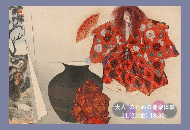 今イベントは、「見る・ふれる・声を出す・動いてみる」ことを通して、能の魅力を楽しく、五感で味わう初心者向けの体験型プログラムである。今回は『猩々』を取り上げ、12月の特別公演で同作の小書『乱』を披く葛野りさ氏を特別講師に迎える。作品の解説や謡の体験、装束・能面を着用しての写真撮影、講師による仕舞の鑑賞を行う。猩々が酒に酔い舞う華やかな物語『猩々』と能楽の世界を体感的に学び理解を深めることができる。