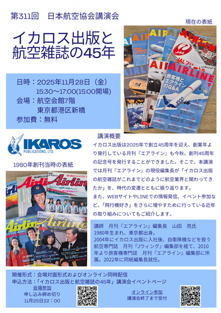 第311回 日本航空協会講演会「イカロス出版と航空雑誌の45年」