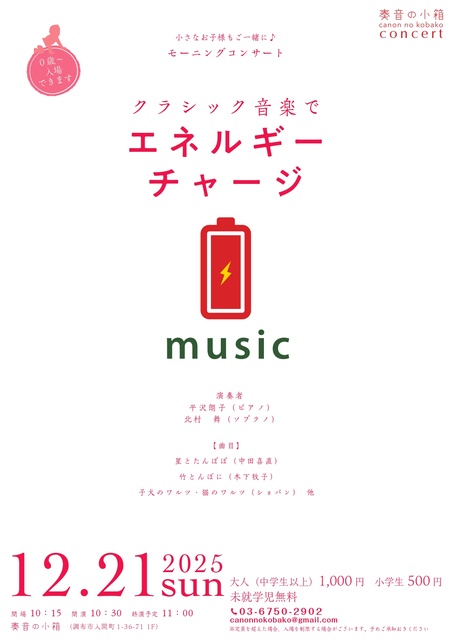 小さなお子様もご一緒に モーニングコンサート クラシック音楽でエネルギーチャージ