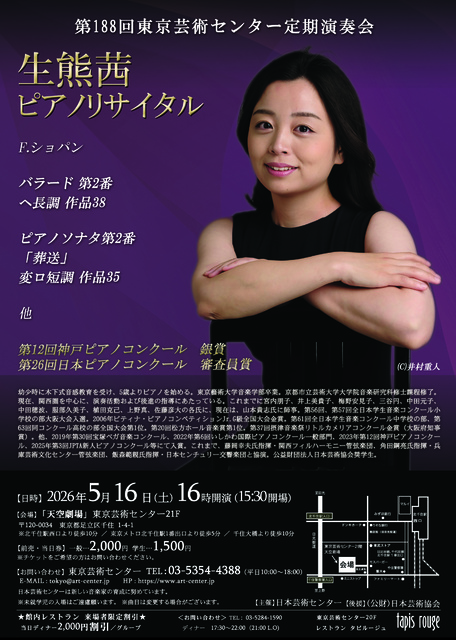 第188回東京芸術センター定期演奏会 生熊茜ピアノリサイタル