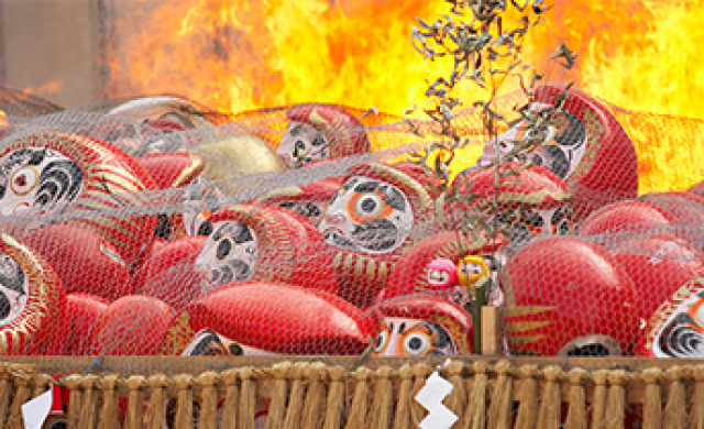 毎年二月の節分の日に「だるま供養」として、つとめ終えただるまをお焚き上げする。受付は一年を通して行っている。(受付9:00~16:30)