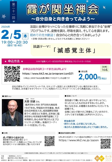 第二十一回 霞が関坐禅会 ~自分自身と向き合ってみよう~ 法話「滅感覚主体」