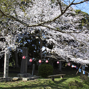 北畠親房ゆかりの阿波崎城趾は、地元の保存会の人たちにより、25年以上も前から植栽や清掃が行われ、山の斜面いっぱいに桜の花が咲き誇る桜の名所となっている。