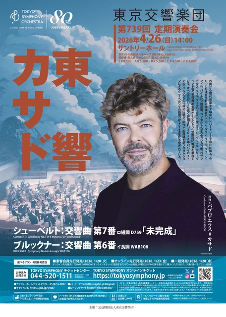 今最も熱いオーケストラ・東京交響楽団の定期演奏会。指揮をパブロ・エラス=カサドが務める。曲目は、シューベルト:交響曲 第7番 ロ短調 D759「未完成」、ブルックナー:交響曲 第6番 イ長調 WAB106を演奏する。