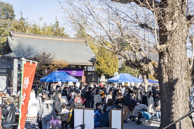 昼間に開催する除夜の鐘。毎年来場者は1000人を超える地域の一大イベント。昼間なので、年配者や子ども連れも安心して参加できる。除夜の鐘限定の開運御朱印の授与も行われる。今年は5年ぶりに、投げ福餅と投げ福銭も実施。さらに境内ではマルシェも同時開催。人気のキッチンカーや子どもが楽しめる駄菓子屋が出店。