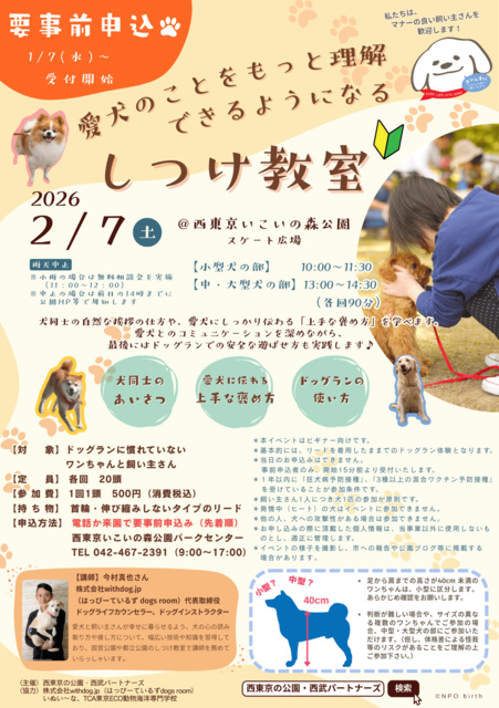 いこいの森公園 愛犬のことをもっと理解できるようになる しつけ教室