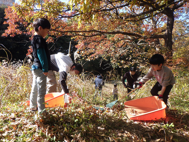 落ち葉かきして原っぱをまもろう