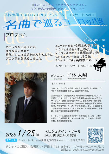 名曲で巡るヨーロッパ旅 〜 平林大翔×BECHSTEIN アフタヌーン・コンサートVol.1