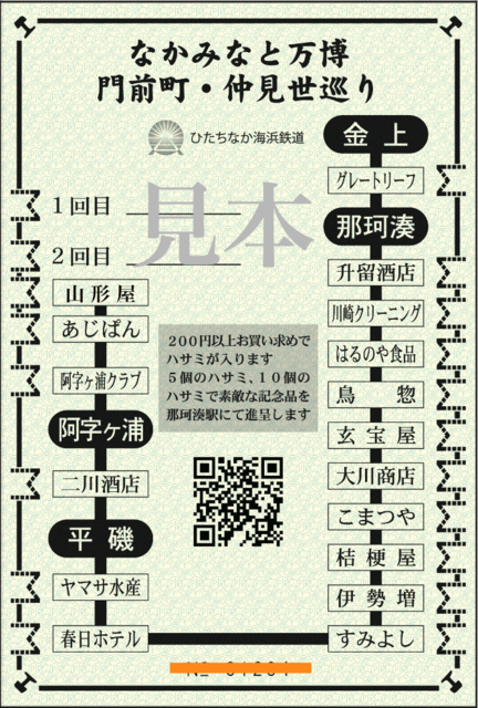 「西の大阪 東のみなと」なかみなと万博200円で参加出来る、美味しくって、楽しくって、ご利益いっぱいで、そんでもって健康的な街歩き企画。街歩き:美味しくって楽しいお店巡り、御朱印巡り:お寺や神社でご朱印を、開運駅印巡り:乗るだけでパワースポット「ひたちなか開運鐡道」で激開運など。昭和ノスタルジー、港町をほのぼの楽しく、美味、開運、人情溢れる旅情を楽しもう。