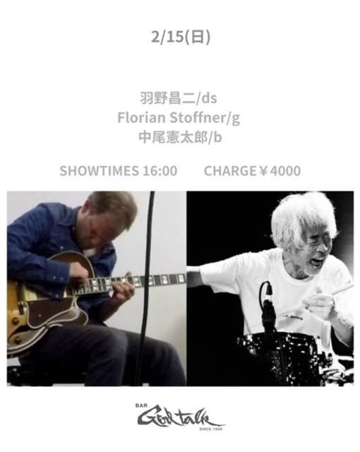 1975年からfree.free jazz.improvisationの演奏活動をしているベテランドラマー羽野昌二初登場。スイスから来日するギタリスト、フロリアン・ストッフナーとフリーセッション! 羽野昌二:太鼓とドラムスによる即興演奏グループ、ポリプレス・パーカッション・バンドを率いる一方、1990年代に初の欧州ツアーを行って以来、世界各国を巡り国内外のミュージシャンと幅広く活動する。