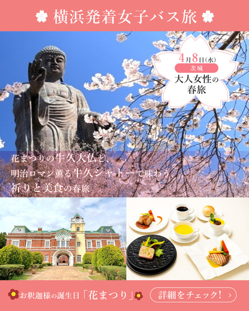 大人女性の春旅 花まつりの牛久大仏と桜色に染まる歴史遺産・名門シャトーの美食ランチ